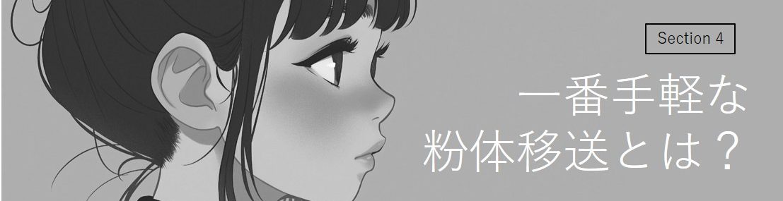 一番手軽な粉体移送方法は、「人手を使った持ち運び」を除くと、
